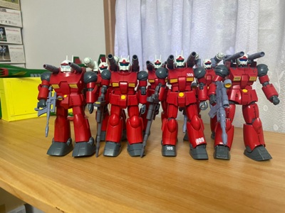 歴代のガンキャノンは、左から旧キット、初期HGUC、HGUCリバイブ、本キットの順です。
